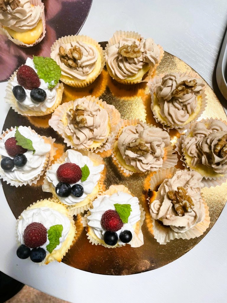 Te mini serniczki to moja nowa obsesja! Są puszyste, mają kruchy maślany spód i dwa różne warianty smakowe – borówkowy z lekkim kremem i czekoladowo-kajmakowy z orzechami i białą czekoladą. Do tego robią efekt „wow” na talerzu, a są naprawdę proste w przygotowaniu.